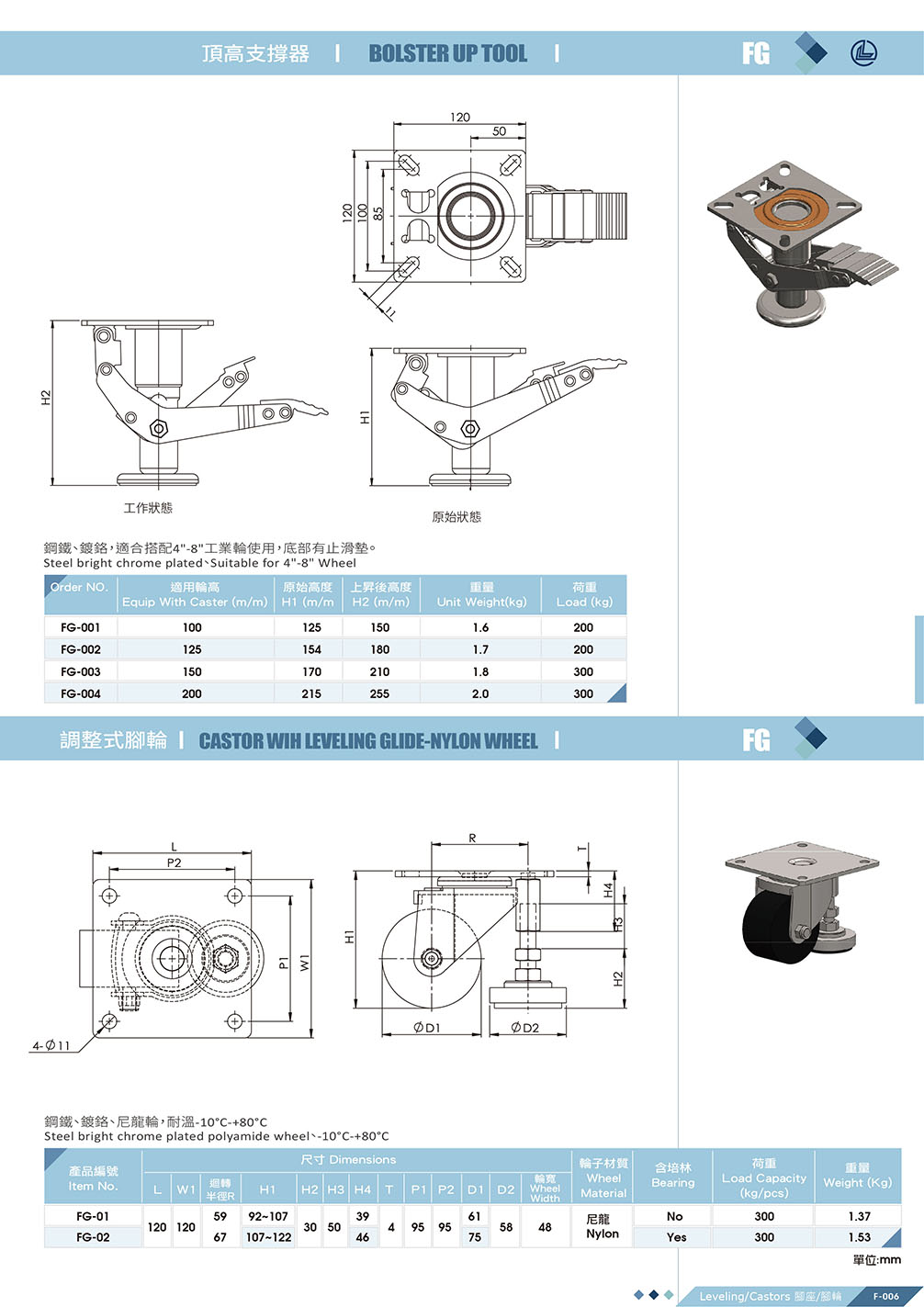 Castor Wih Leveling Glide-Nylon Wheel FG-01 Series