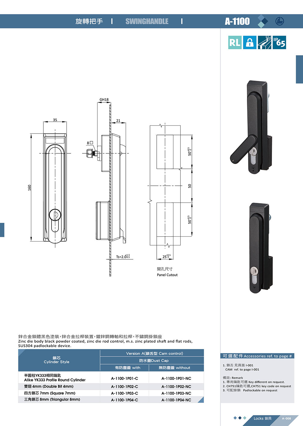 - Handle Body: Zinc alloy die-cast with powder coating, corrosion-resistant.