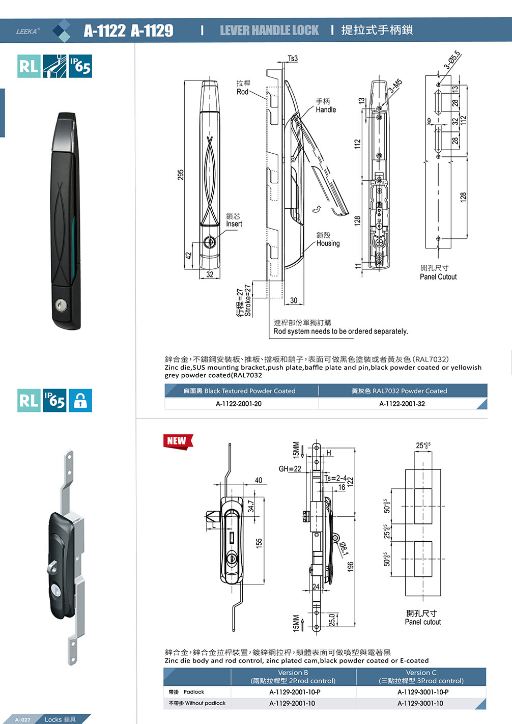 - Integrated Lever: Compact structure; the lever is directly mounted on the lock, saving internal cabinet space and suitable for tight spaces.