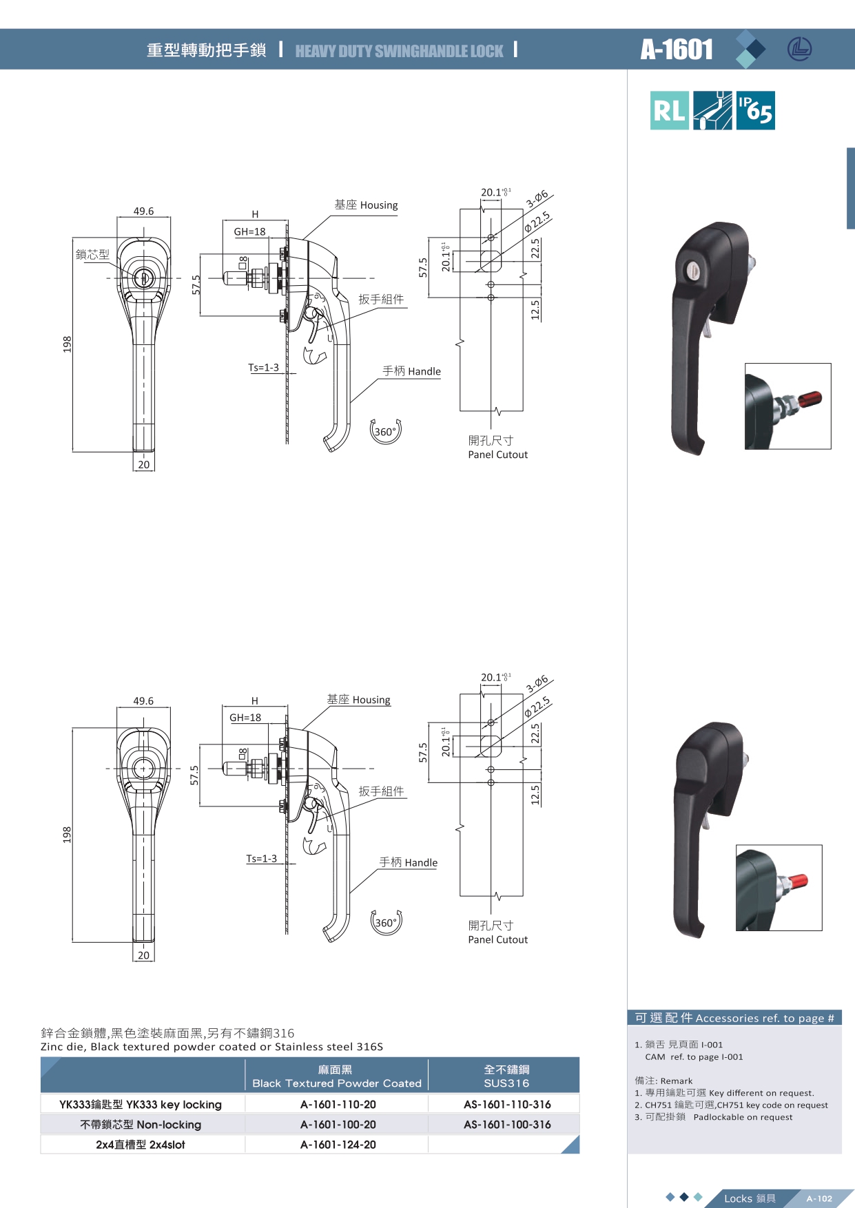 Zinc die, Black textured powder coated or Stainless steel 316.