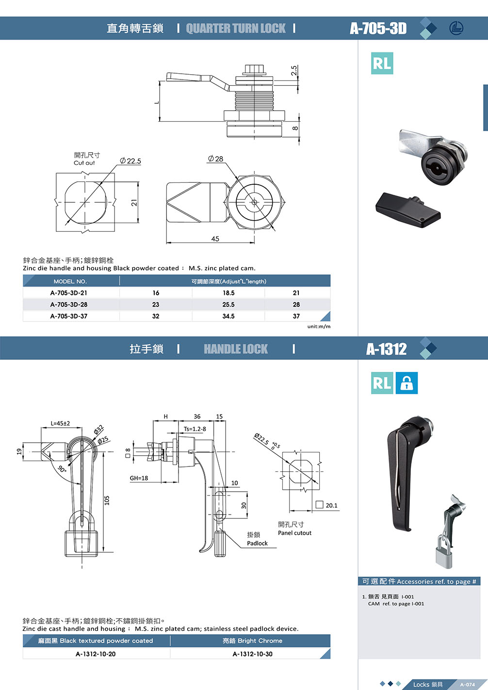 Zinc die handle and housing Black powder coated; M.S. zinc plated cam.