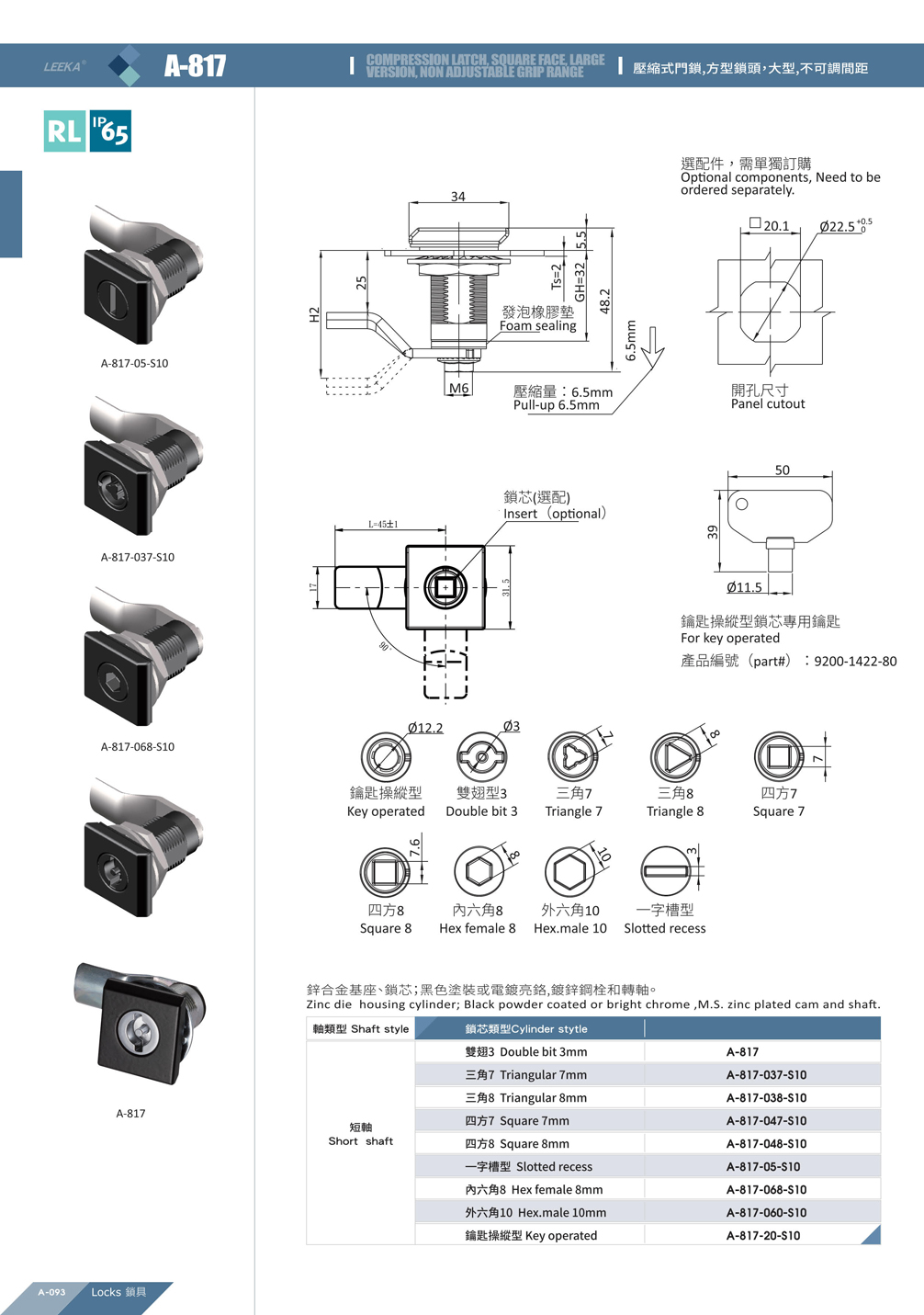 Square-shaped lock head design, large size, available in two types: fixed distance and adjustable distance.