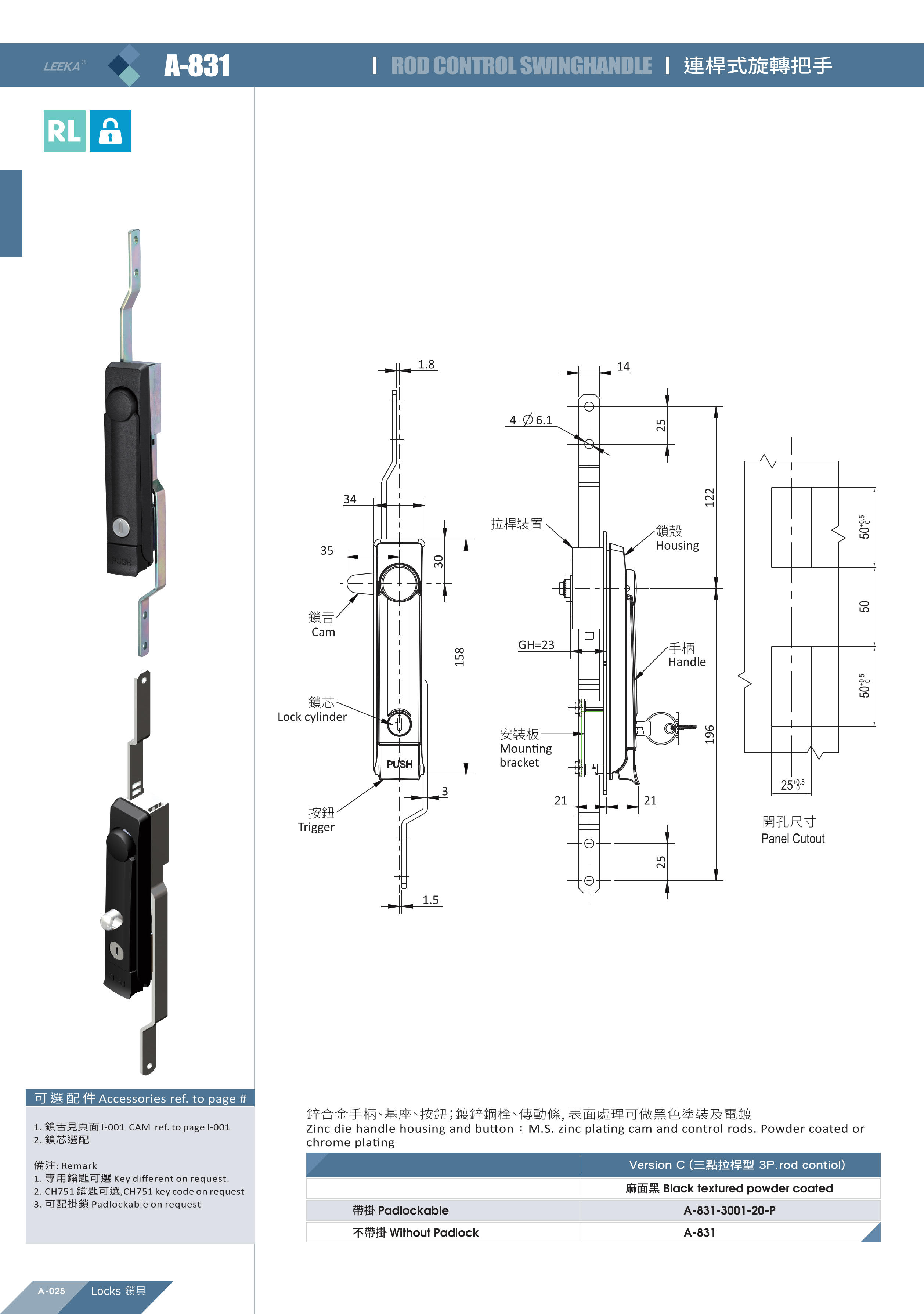 - Commonly used on cabinet doors, electrical distribution boxes, and industrial machine doors, as it provides multi-point locking through rods and enhanced protection with a padlock.