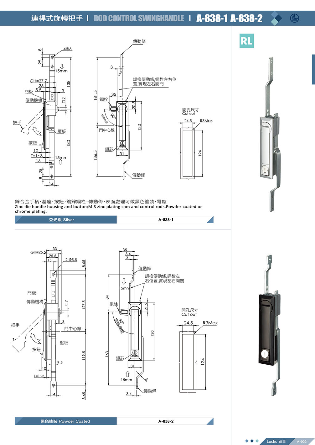 • Rod-type Design: Simultaneously locks/unlocks through upper and lower rods, suitable for tall doors or large cabinets.