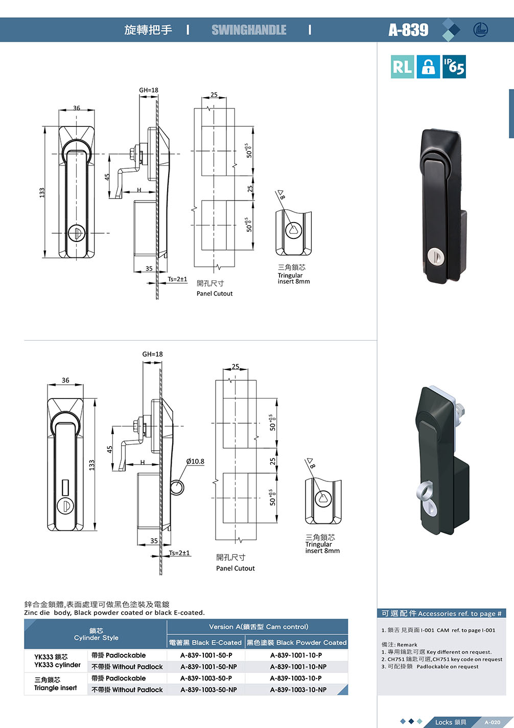 - Optional Lock Cores: Available with standard key lock core or triangular lock core.