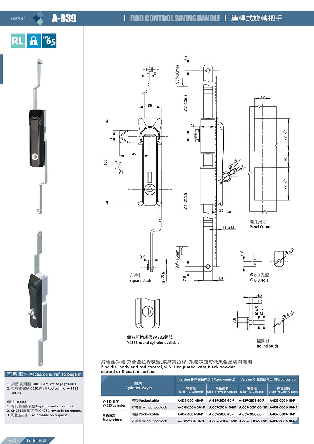 Rod Control Rotary Handle Lock