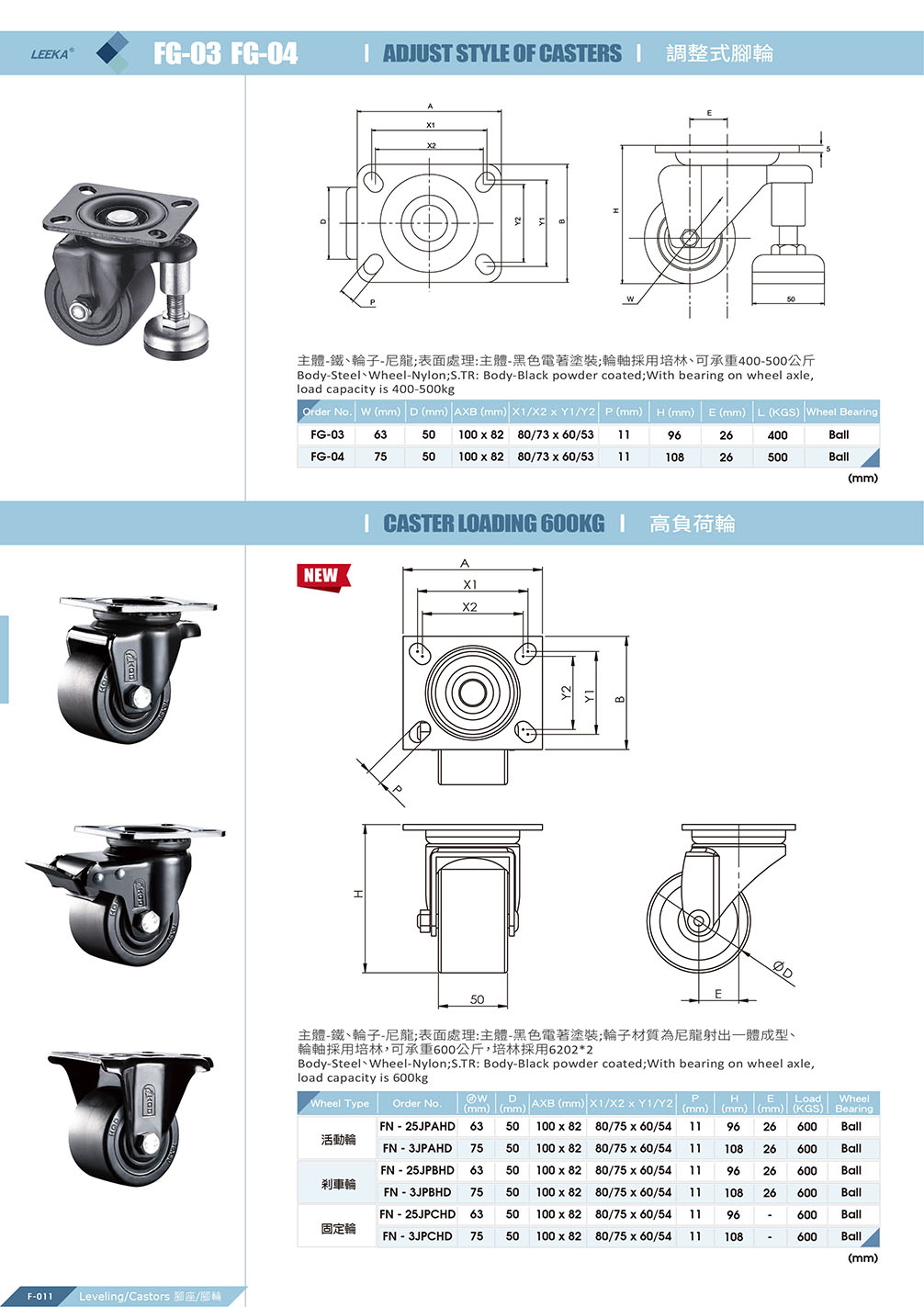 Body-Steel, Wheel-Nylon; S.TR: Body-Black Powder coated;